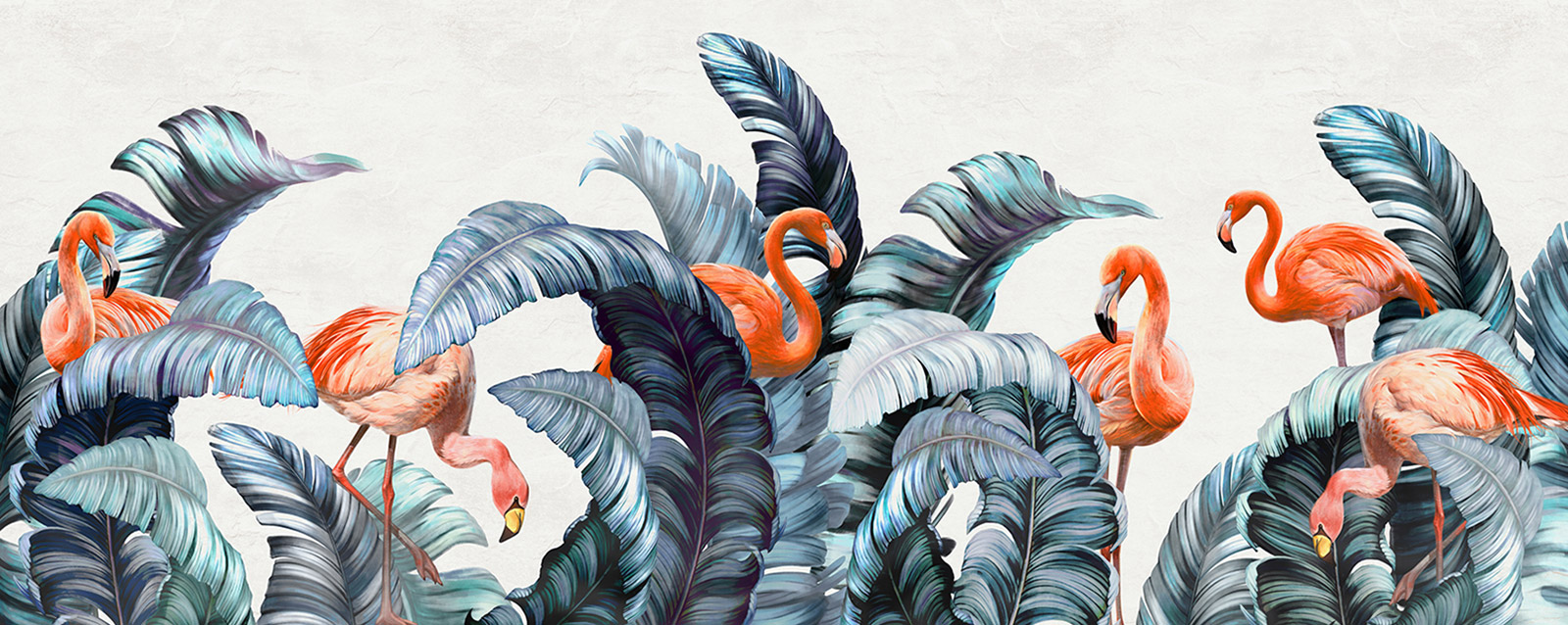 www.lumalea.es > Papeles Pintados > Papeles Pintados Panorámicos > Tropical / Jungla > Papel pintado panorámico - Flamencos rosas