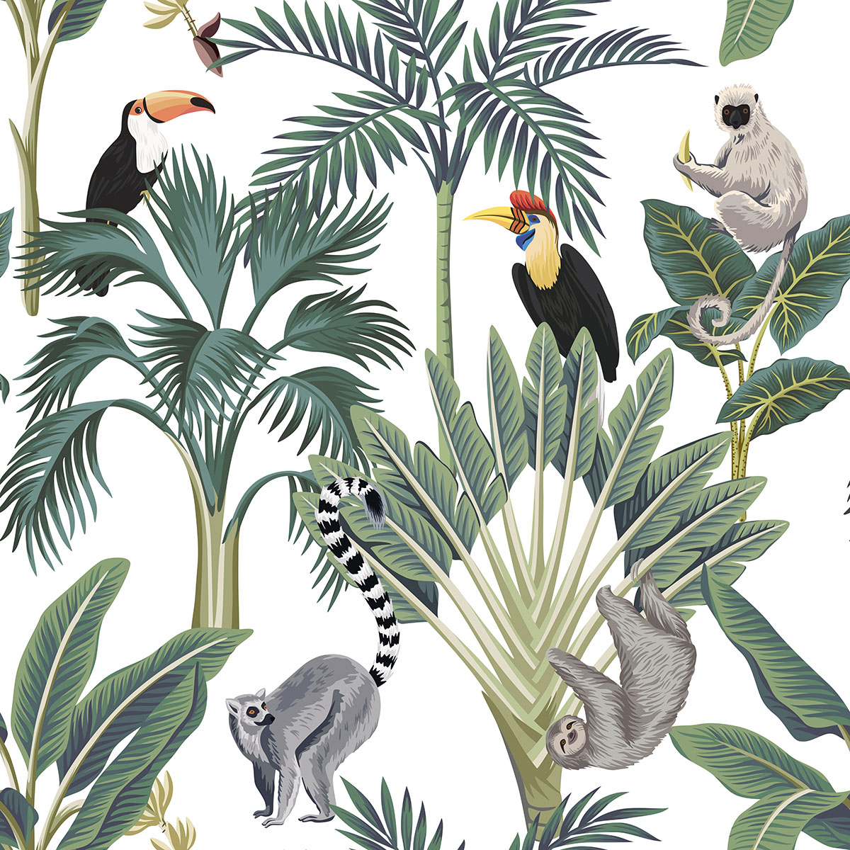 Papel pintado panorámico para niños - Infantil - Animales de la Selva