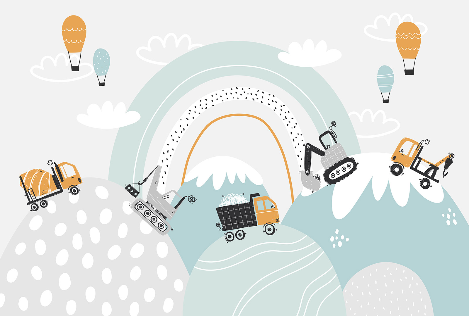 Papel pintado panorámico para niños - Infantil - Camiones Obras