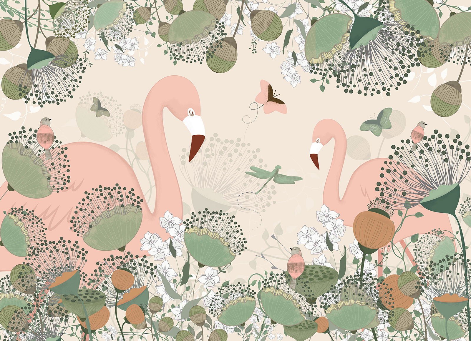 Papel pintado panorámico para niños - Infantil - Flamencos Rosados
