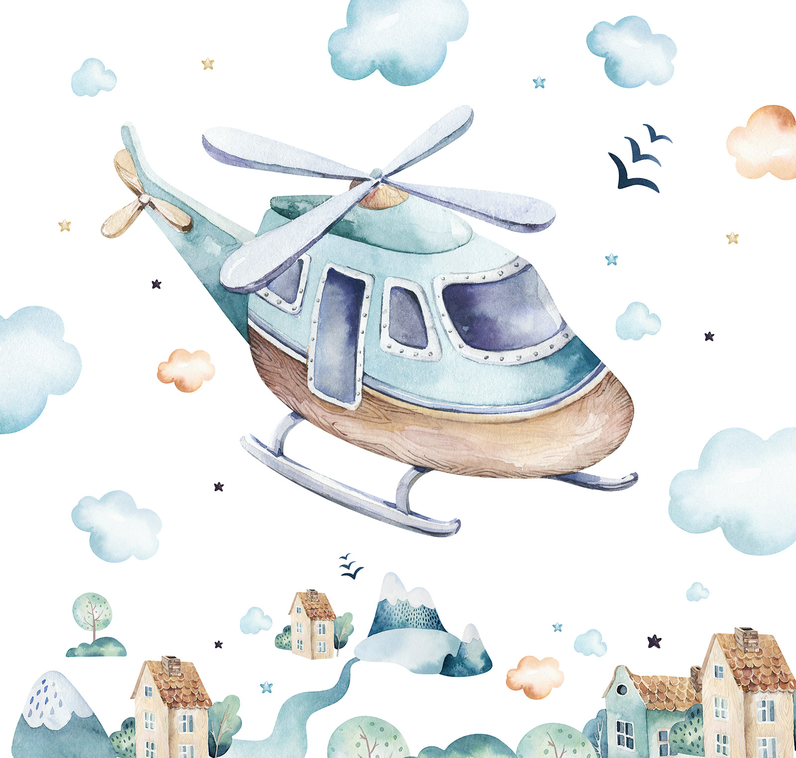 Papel pintado panorámico para niños - Infantil - Helicóptero