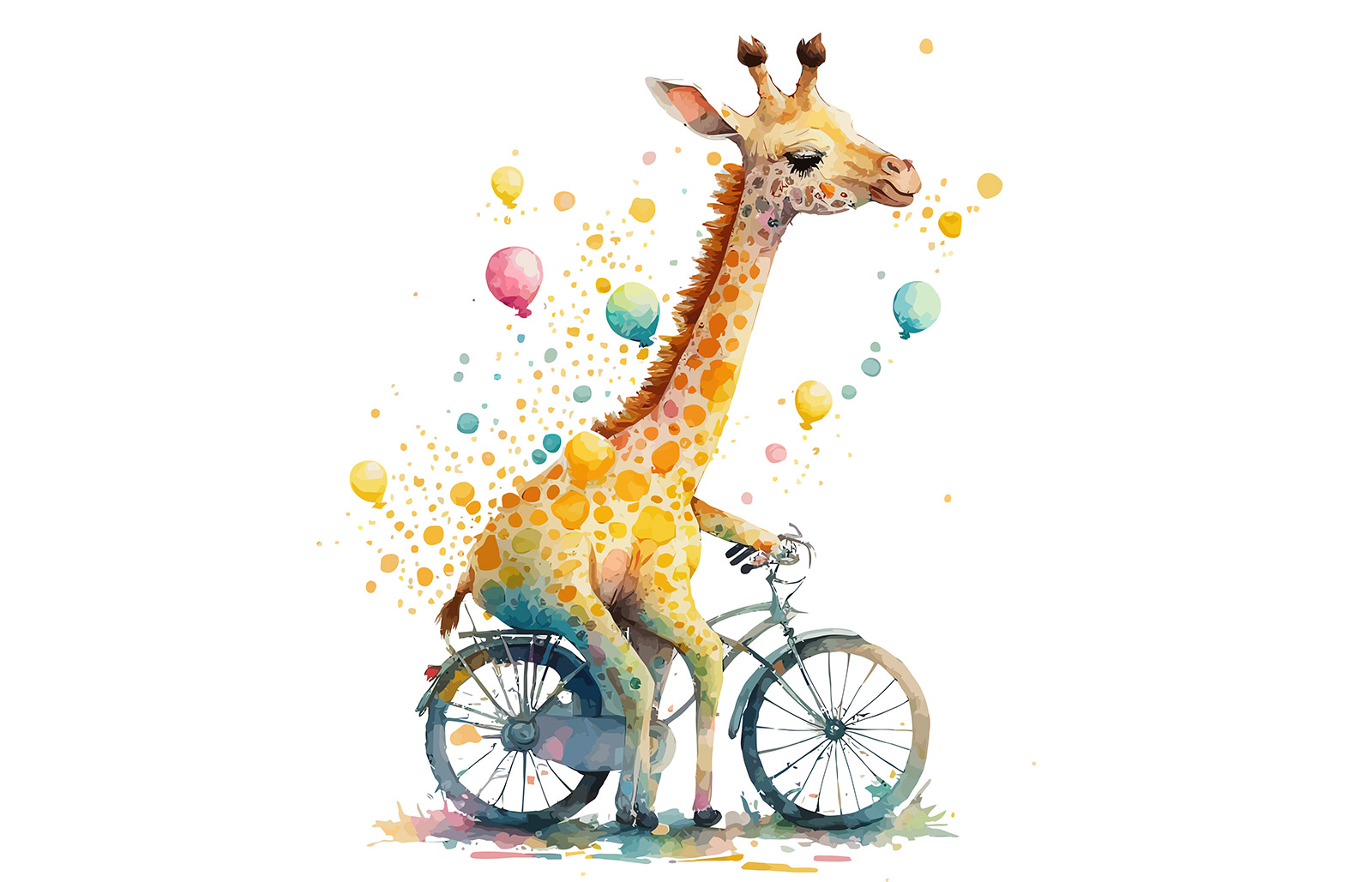 Papel pintado panorámico para niños - Infantil - Jirafa en Bicicleta