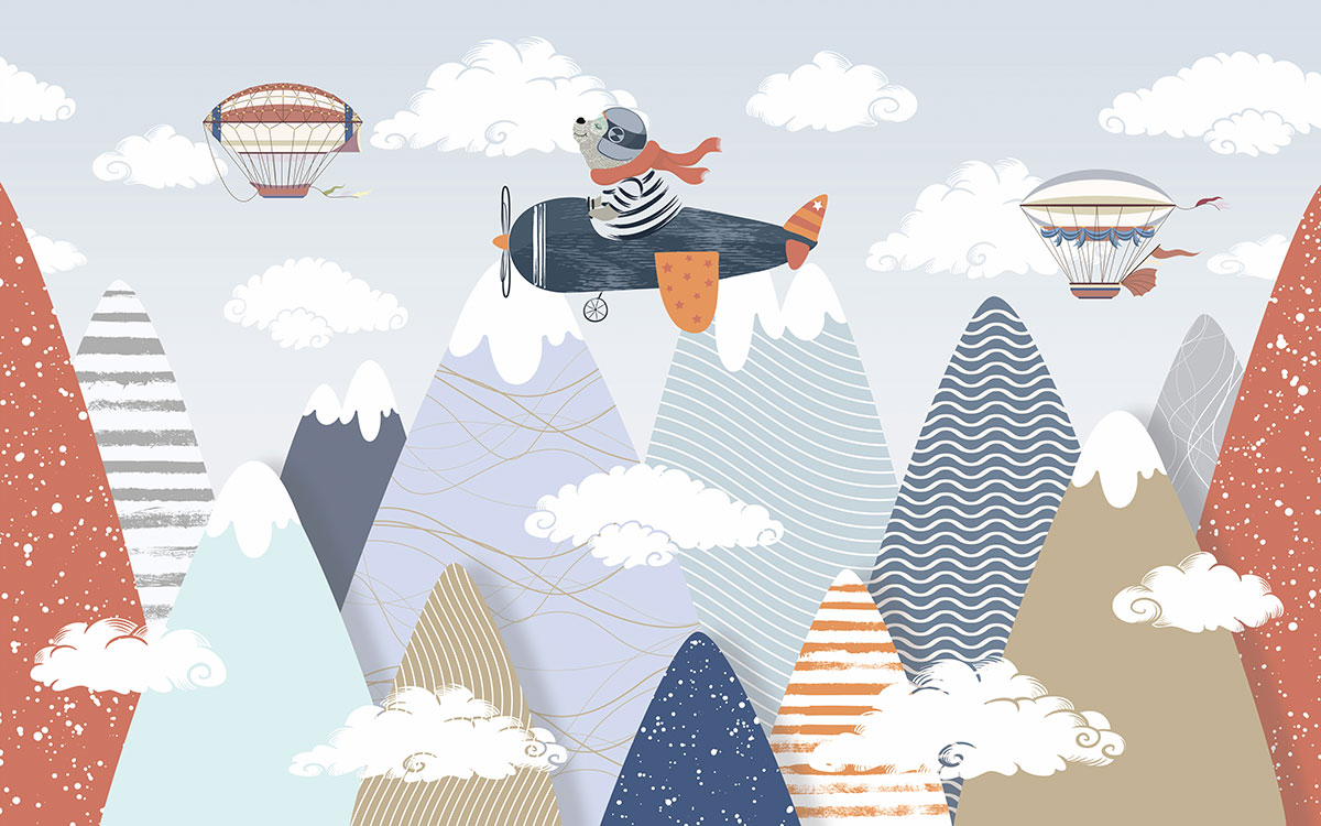 Papel pintado panorámico para niños - Infantil - Osito Aviador