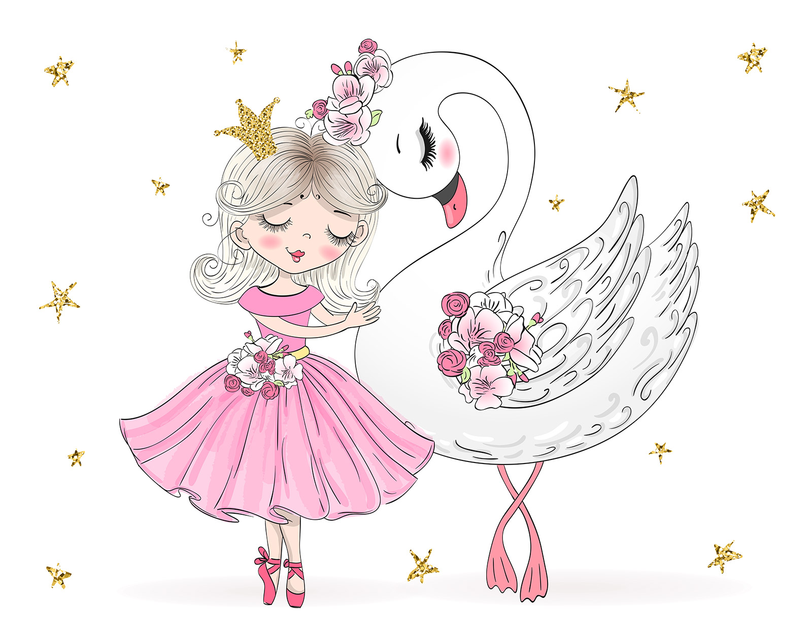 Papel pintado panorámico para niños - Infantil - Princesa Cisne