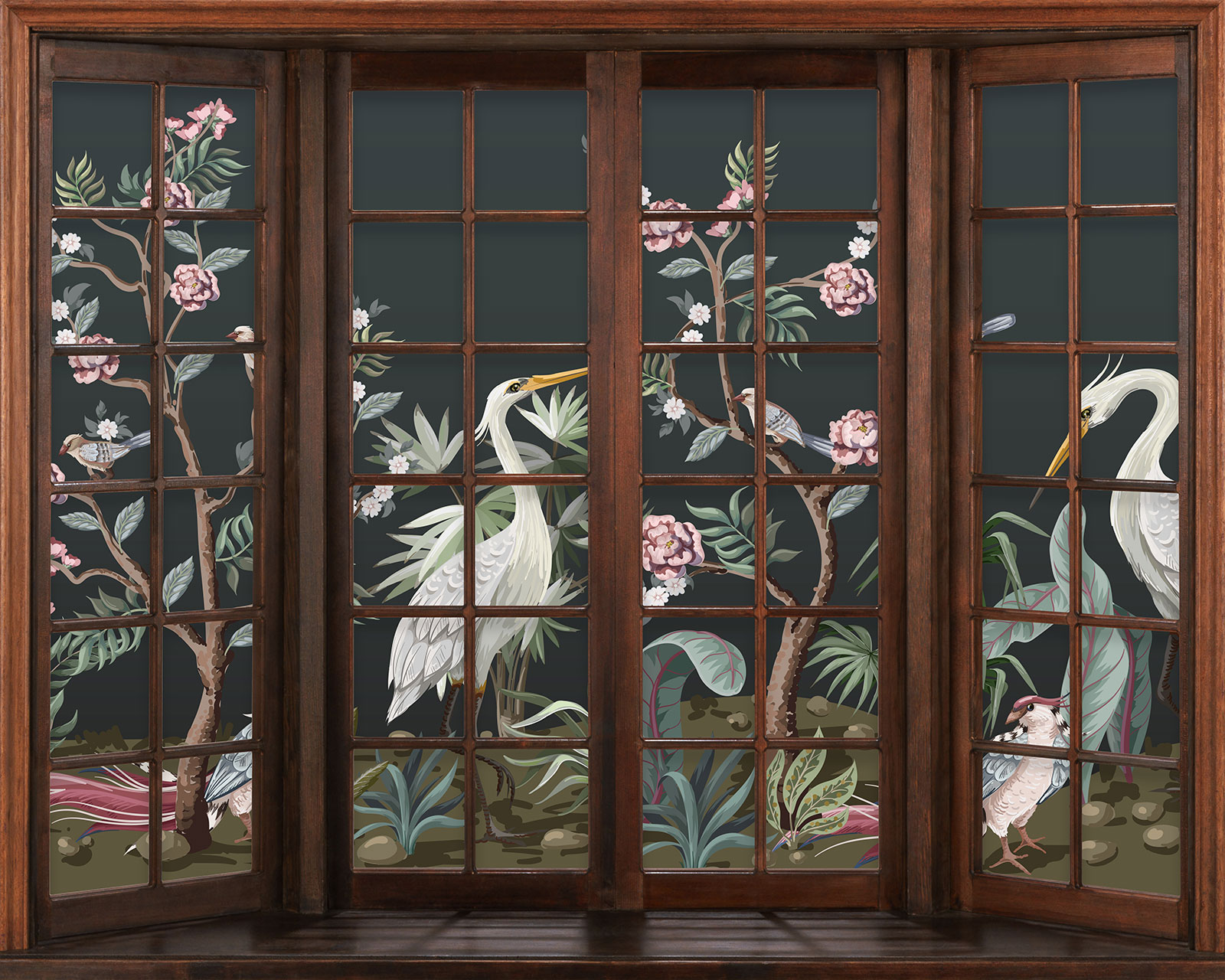 Papel pintado panorámico trampantojo - Aves Tropicales