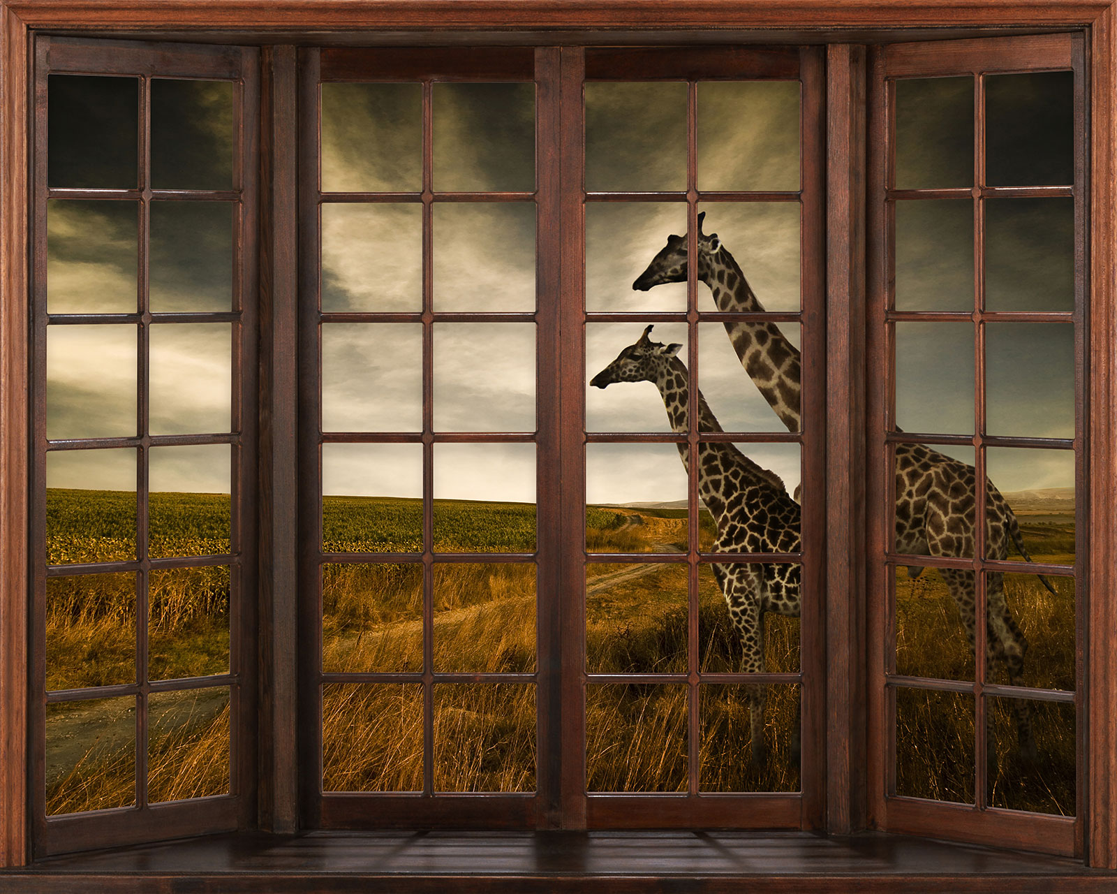 Papel pintado panorámico trampantojo - Jirafas