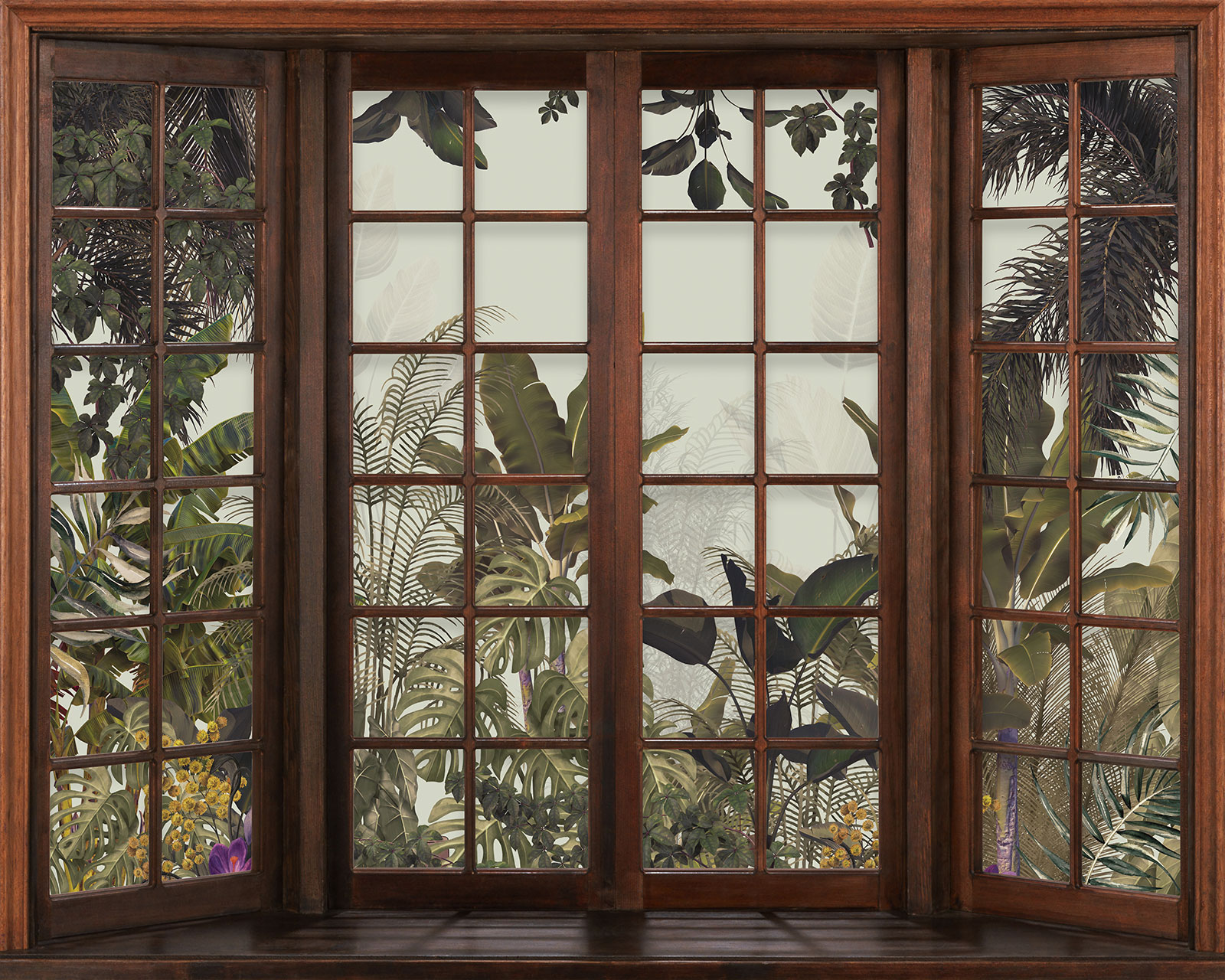 www.lumalea.es > Papeles Pintados > > > Papeles Pintados Trampantojo 3D > Ventanas Trampantojo 3D > Papel pintado panorámico trampantojo - Selva Tropical