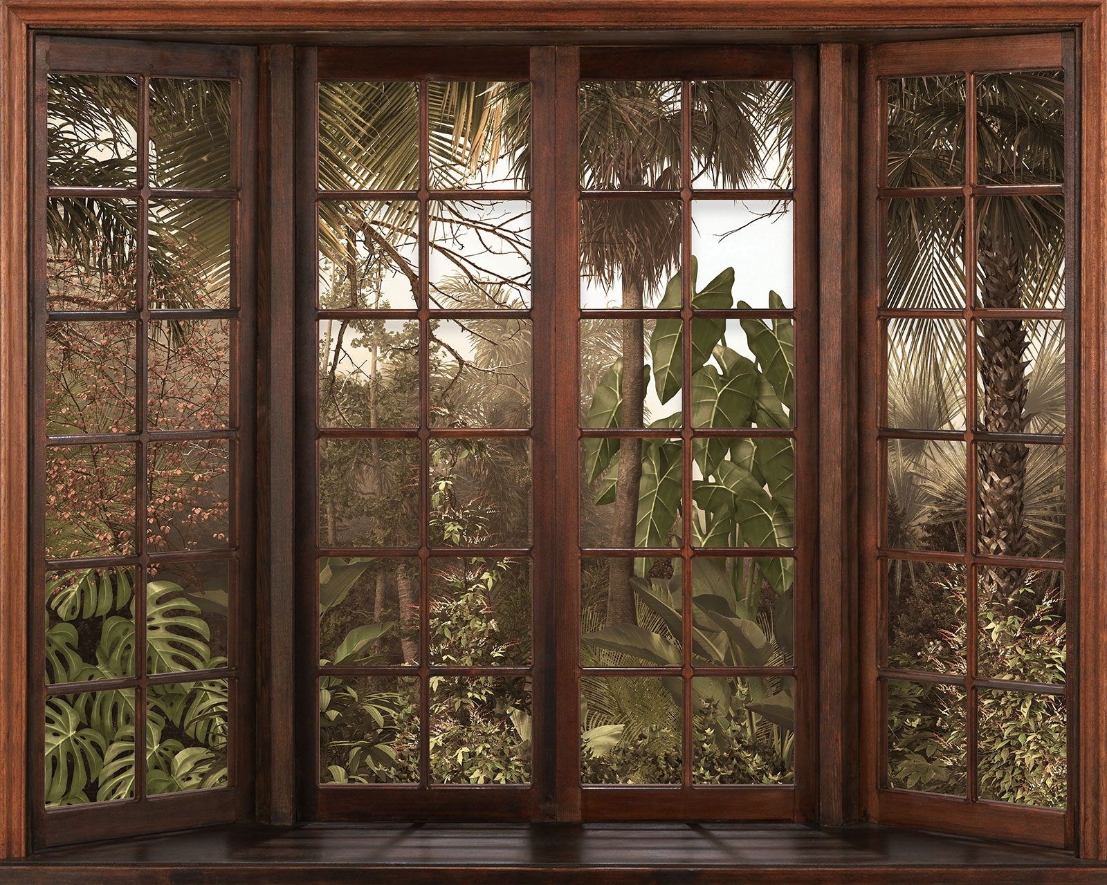 www.lumalea.es > Papeles Pintados > > > Papeles Pintados Trampantojo 3D > Ventanas Trampantojo 3D > Papel pintado panorámico trampantojo - Selva Tropical