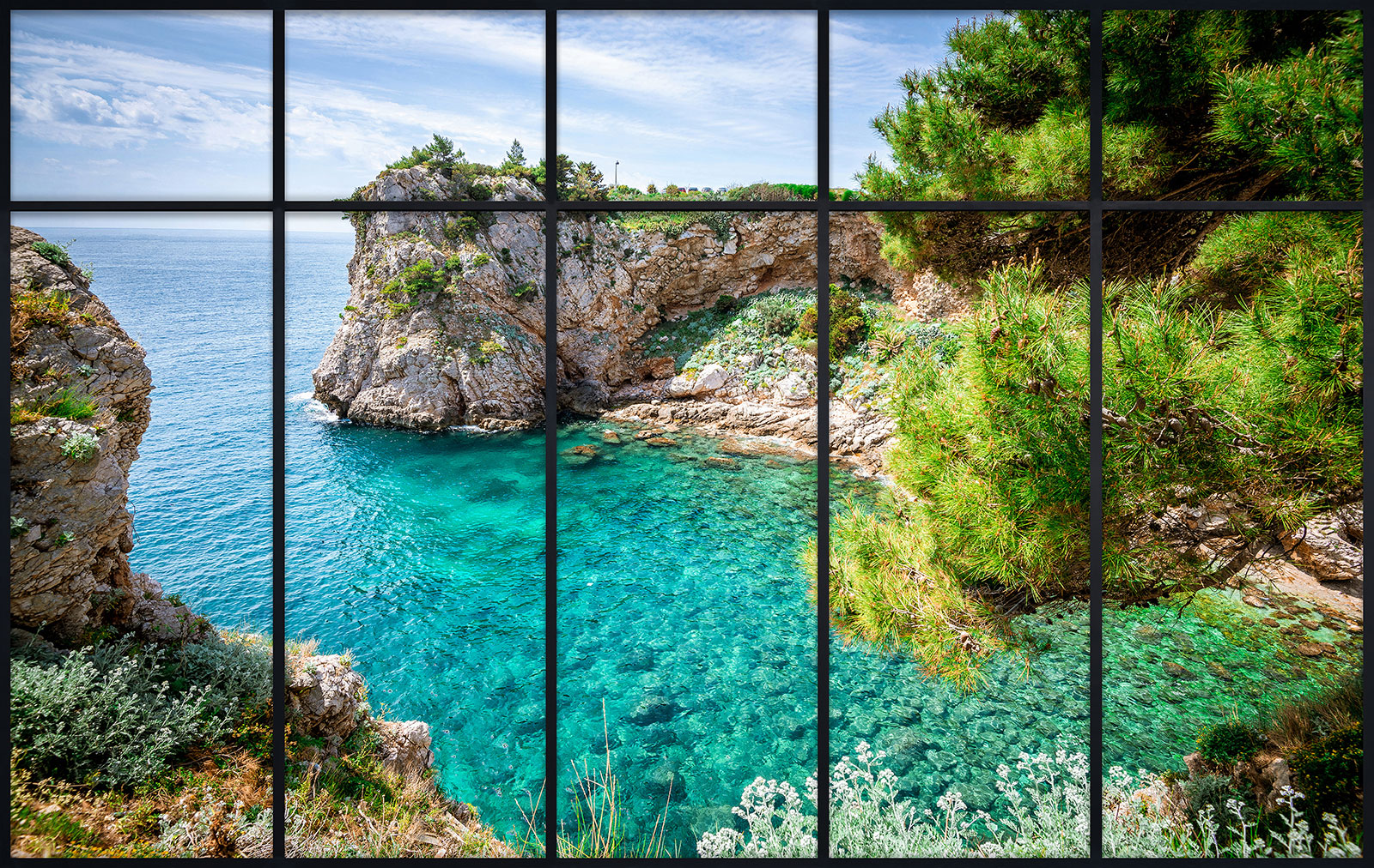 www.lumalea.es > Papeles Pintados > > > Papeles Pintados Trampantojo 3D > Ventanales Trampantojo 3D > Papel pintado panorámico trampantojo - Vista al mar
