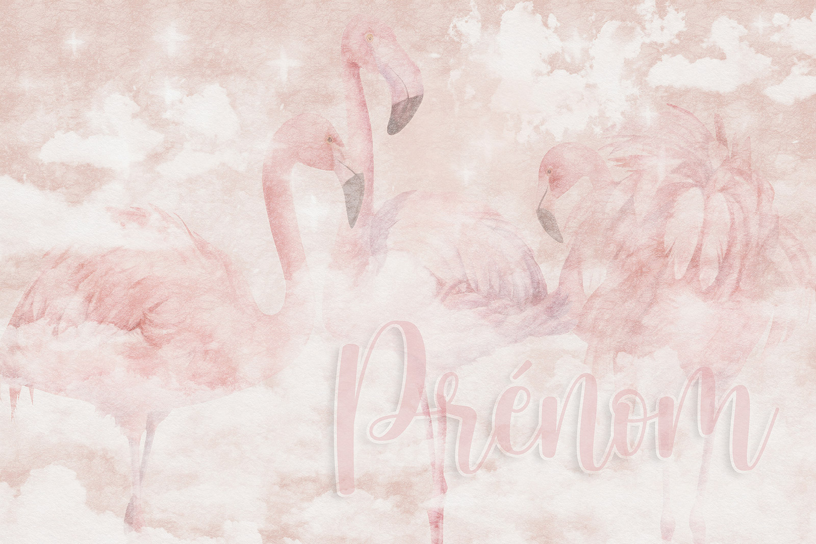 Papel pintado para niños - infantil panorámico con nombre personalizado - Flamencos Rosados