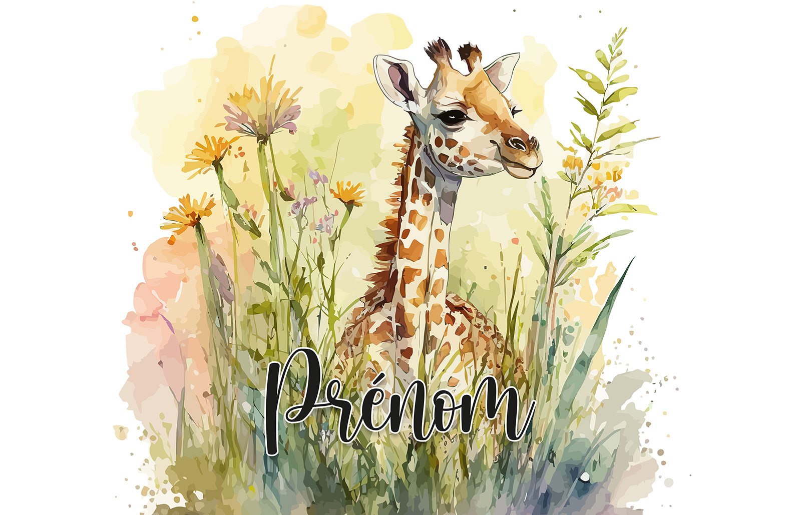 Papel pintado para niños - infantil panorámico con nombre personalizado - Jirafa