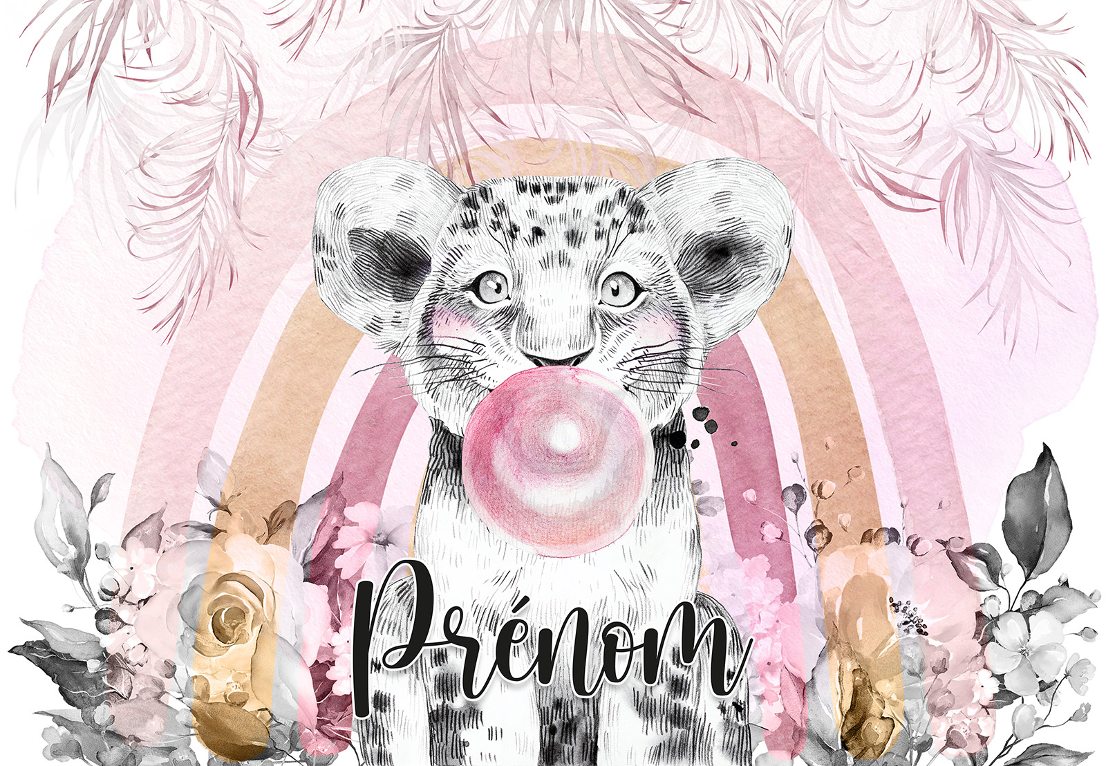 Papel pintado para niños - infantil panorámico con nombre personalizado - León Chicle