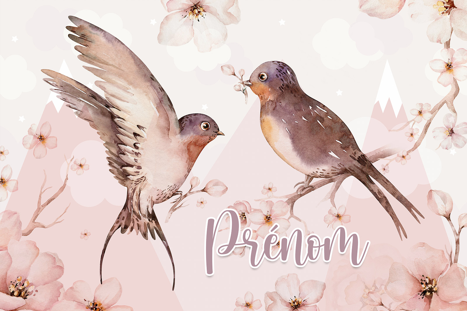 Papel pintado para niños - infantil panorámico con nombre personalizado - Pájaros