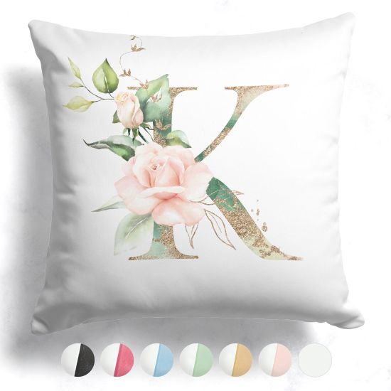 Cojín bicolor con monograma e iniciales - K