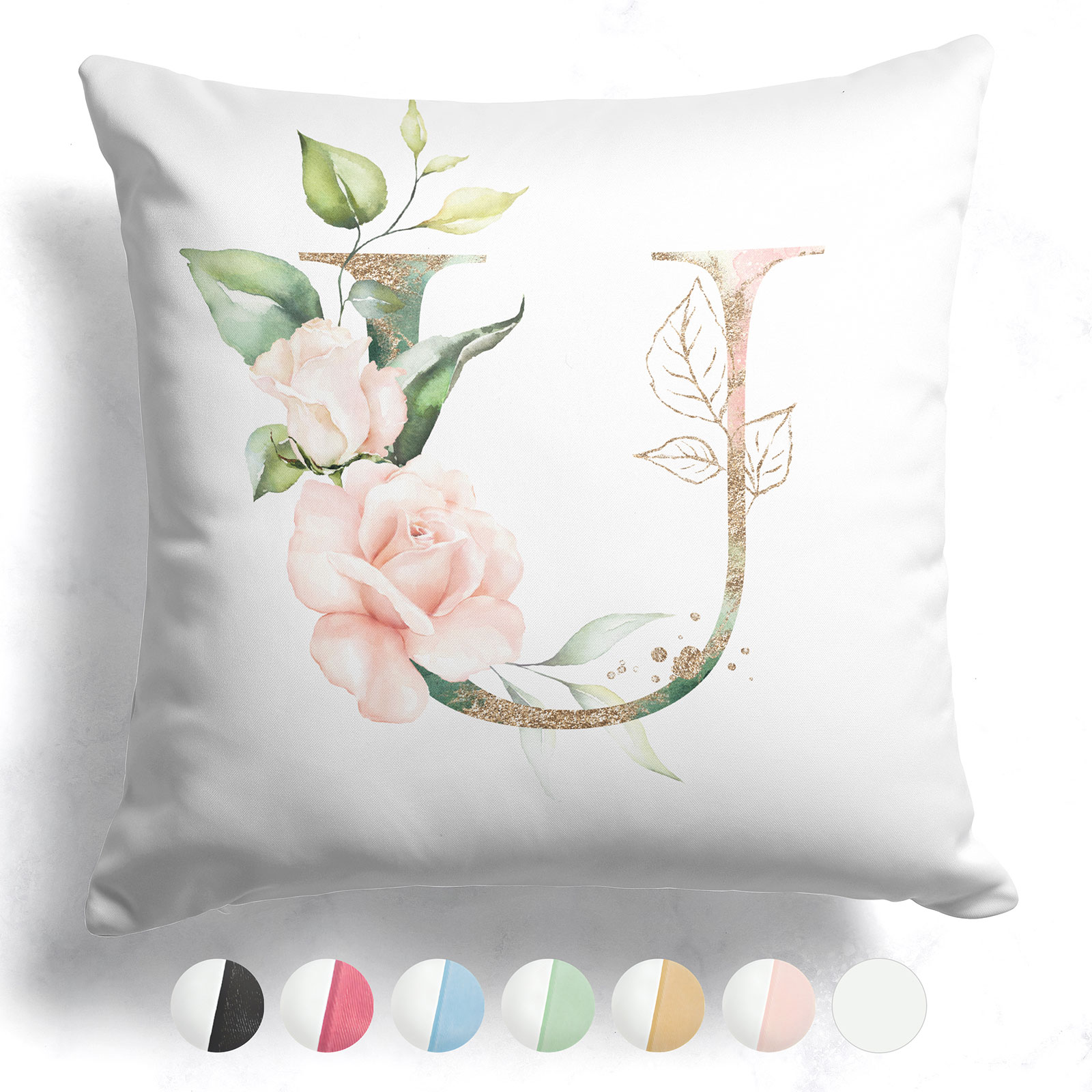 www.lumalea.es > Textiles > Cojines Monogramados > Modelo 6 > Cojín bicolor con monograma e iniciales - U