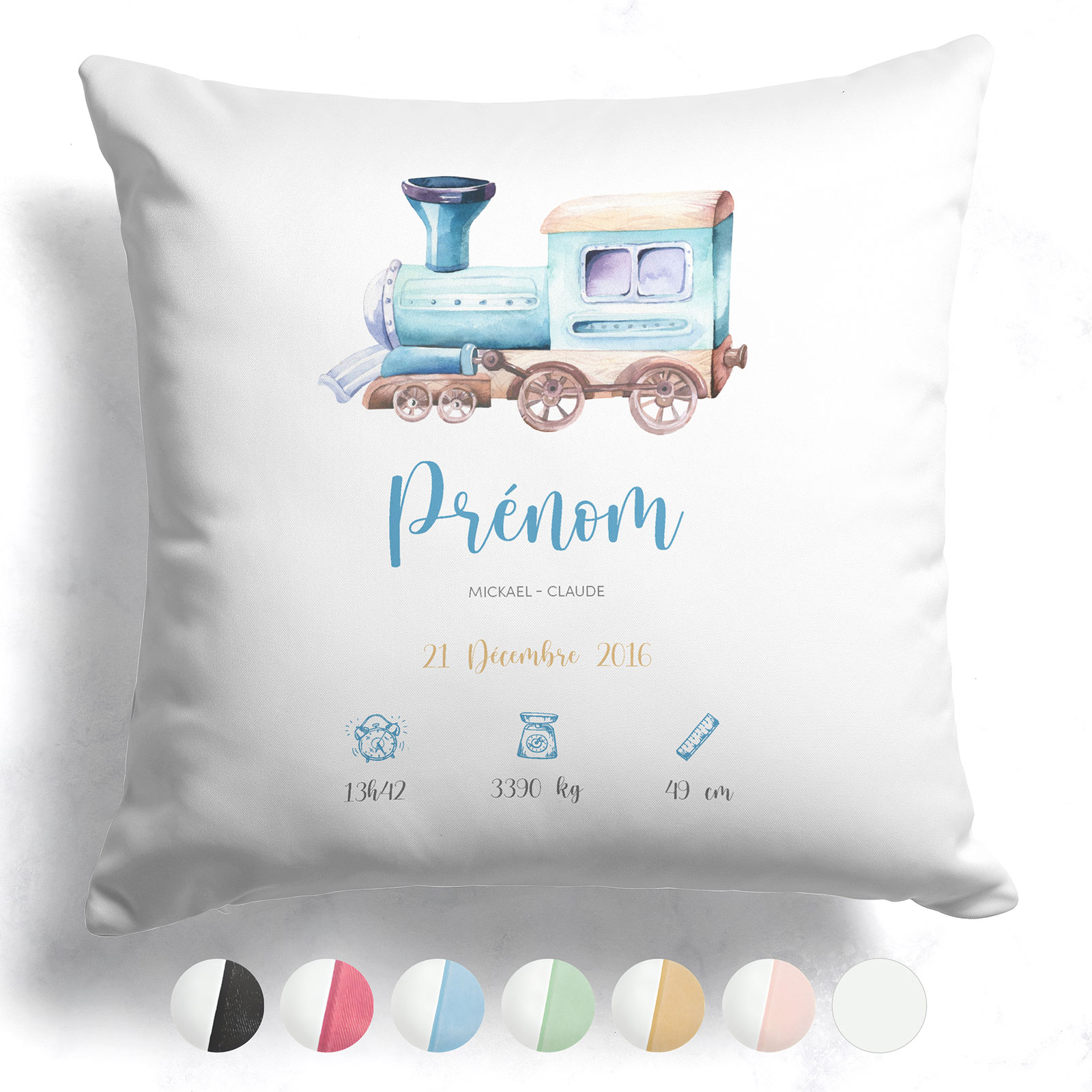 Ordene hoy mismo y personalice este cojÃn de nacimiento bicolor para crear un regalo único y memorable para un recién nacido.