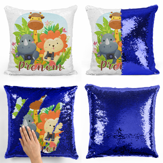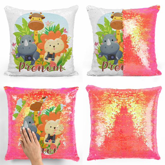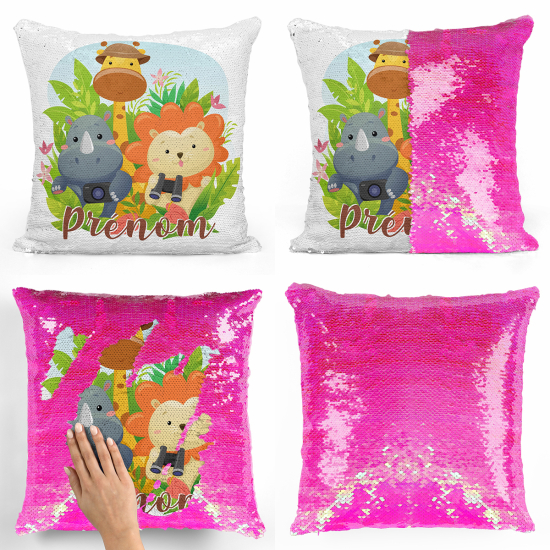 Cojín mágico con lentejuelas personalizado - Animales de la jungla