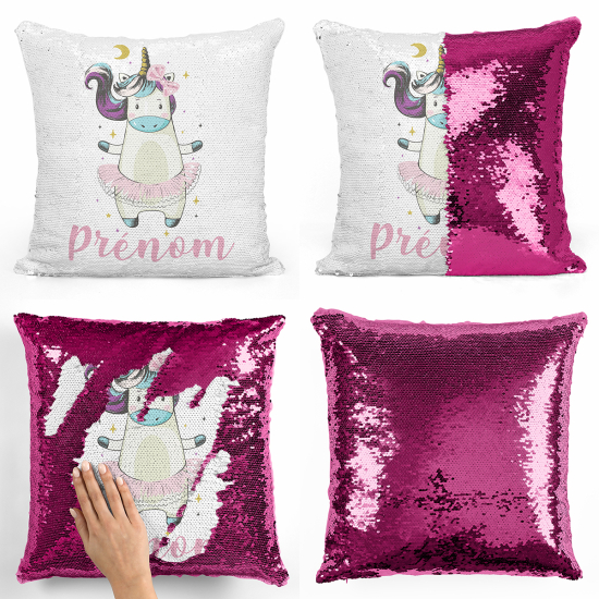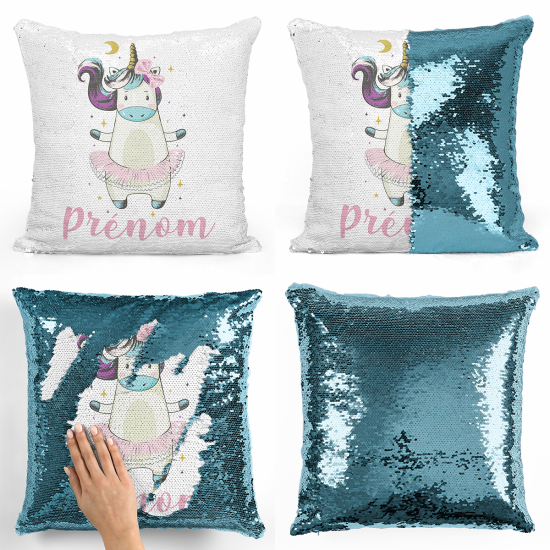Cojín mágico con lentejuelas personalizado - Bailarina unicornio
