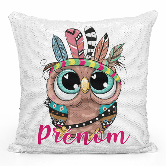 Cojín mágico con lentejuelas personalizado - Búho indio