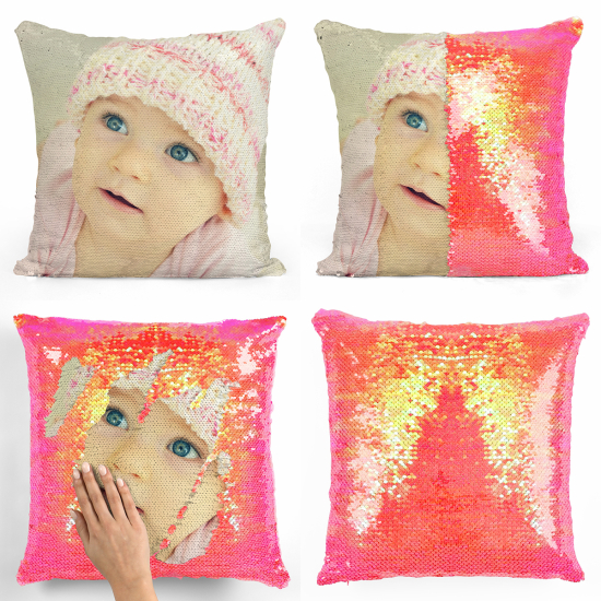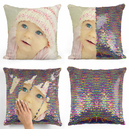 Este cojín de lentejuelas reversibles es el regalo perfecto para alegrar cualquier espacio. Personaliza el tuyo hoy mismo y descubre la magia de las lentejuelas que revelan una foto al pasar la mano.