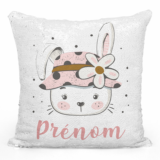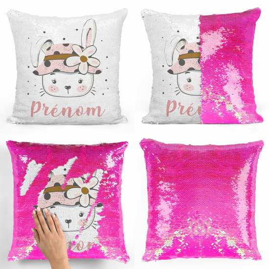 Cojín mágico con lentejuelas personalizado - Conejo flor