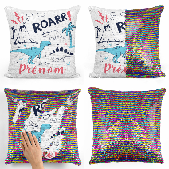 Cojín mágico con lentejuelas personalizado - Dinosaurios