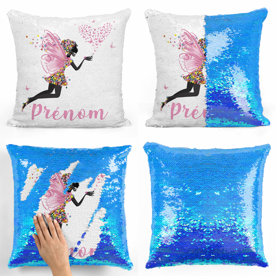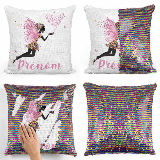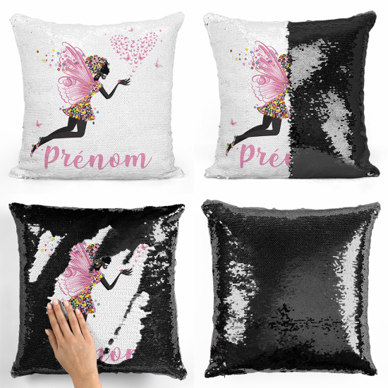 Cojín mágico con lentejuelas personalizado - Hada corazón mariposas