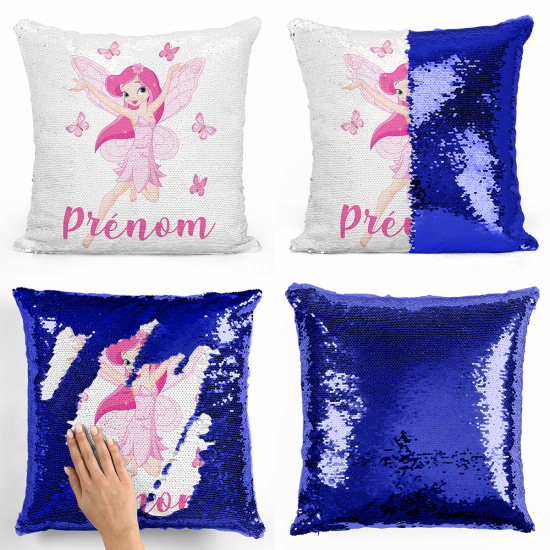 Cojín mágico con lentejuelas personalizado - Hada mariposas