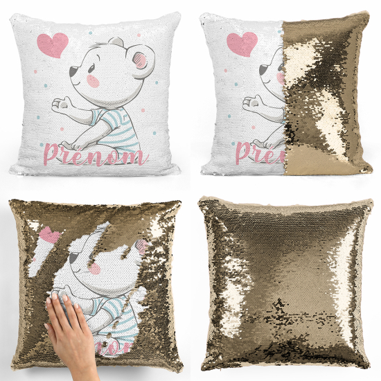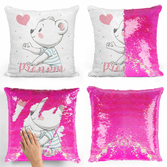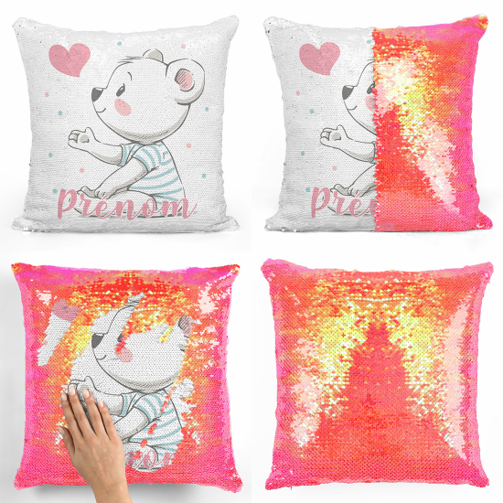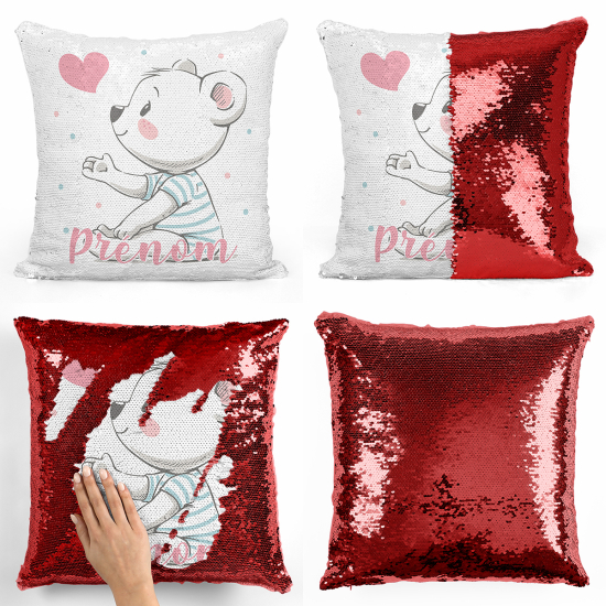 Cojín mágico con lentejuelas personalizado - Osito corazón