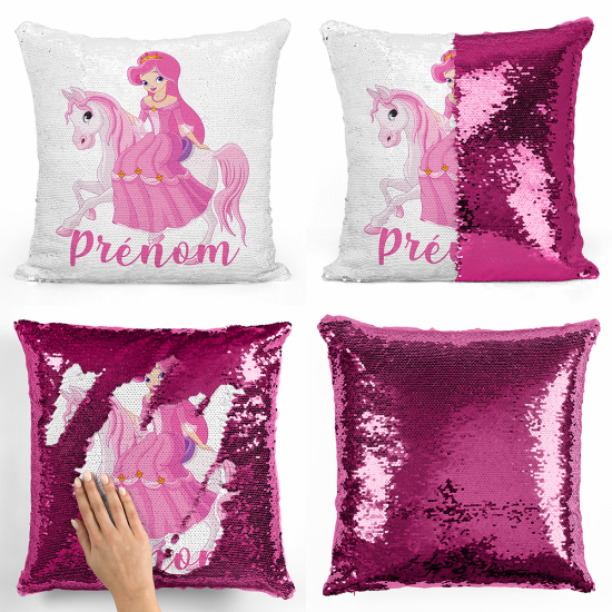 Cojín mágico con lentejuelas personalizado - Princesa a caballo