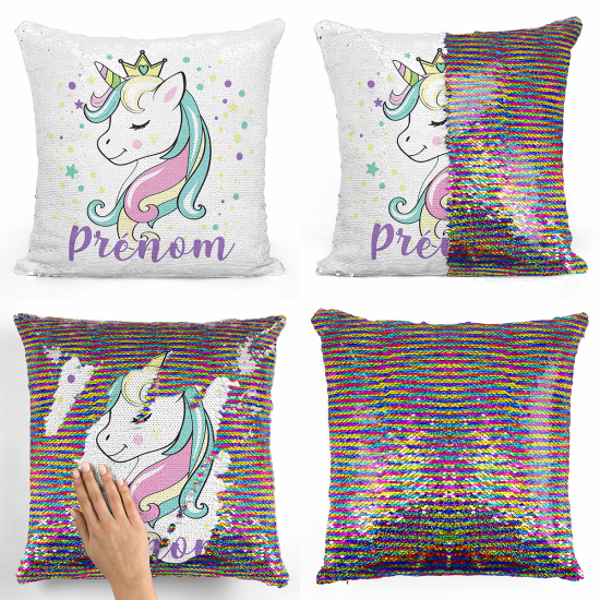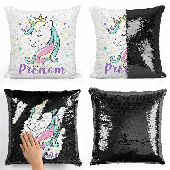 Cojín mágico con lentejuelas personalizado - Princesa unicornio