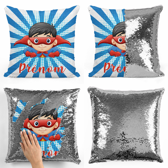 Cojín mágico con lentejuelas personalizado - Superhéroe
