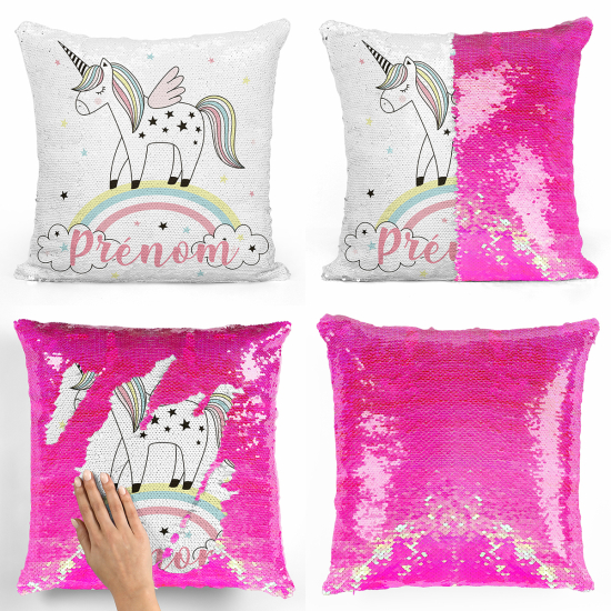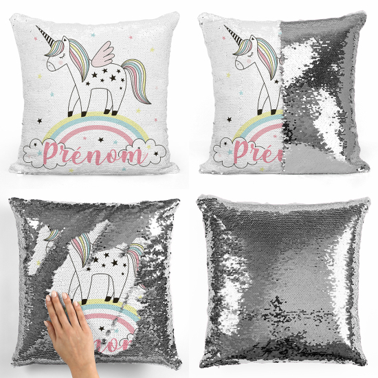 Cojín mágico con lentejuelas personalizado - Unicornio arcoíris