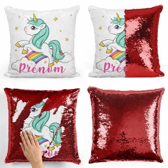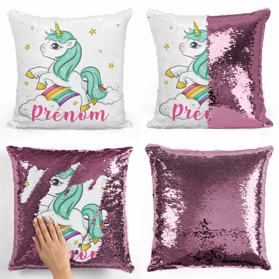 Cojín mágico con lentejuelas personalizado - Unicornio arcoíris