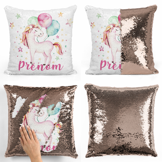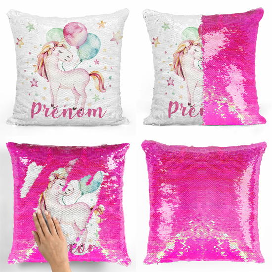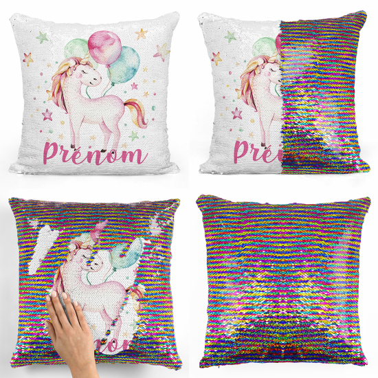 Cojín mágico con lentejuelas personalizado - Unicornio globos