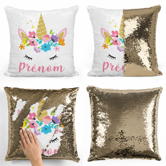 Cojín mágico con lentejuelas personalizado - Unicornio mágico