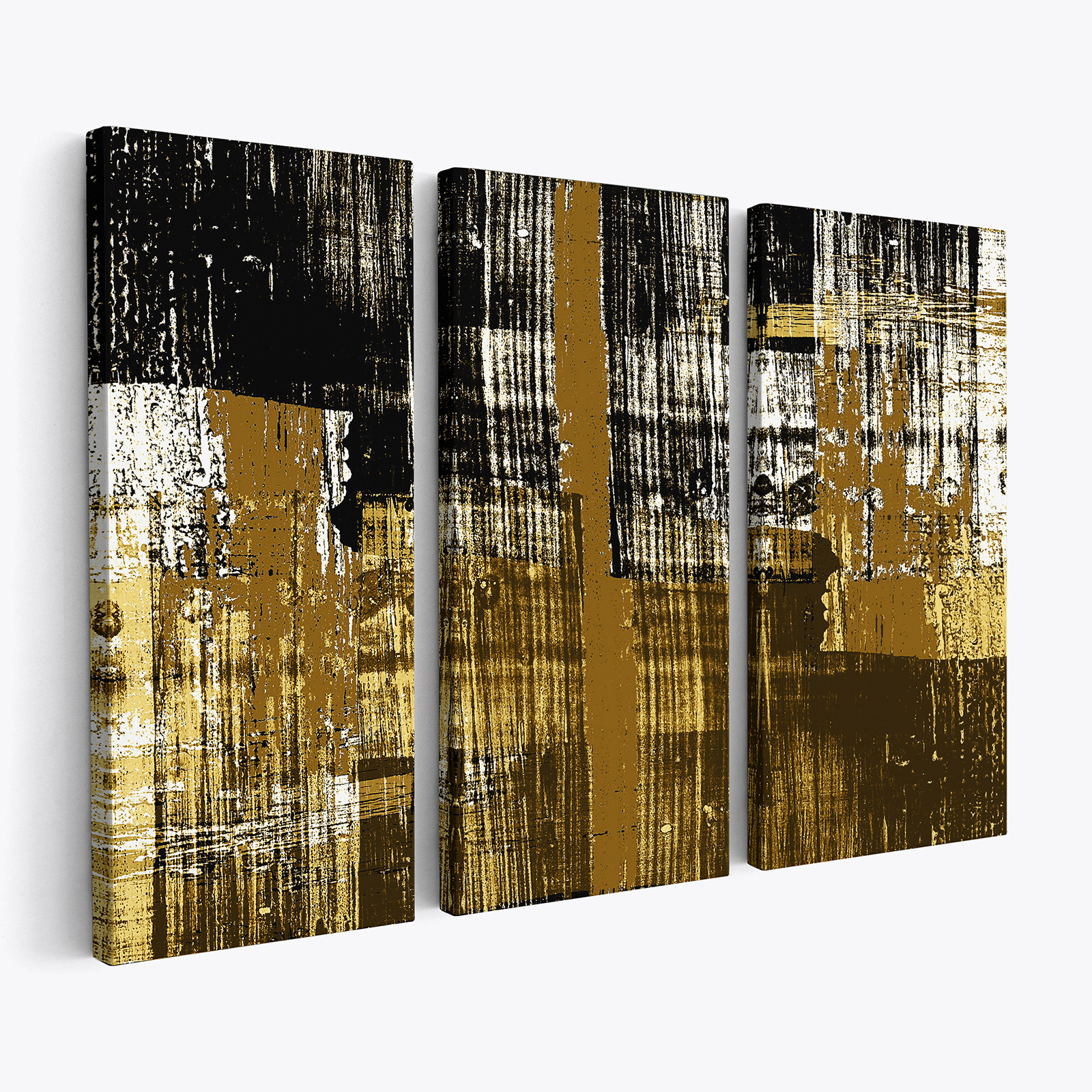 Trípticos de lienzos impresos en alta definición, montados en bastidores de pino de 2 cm de grosor con clavijas de retención.