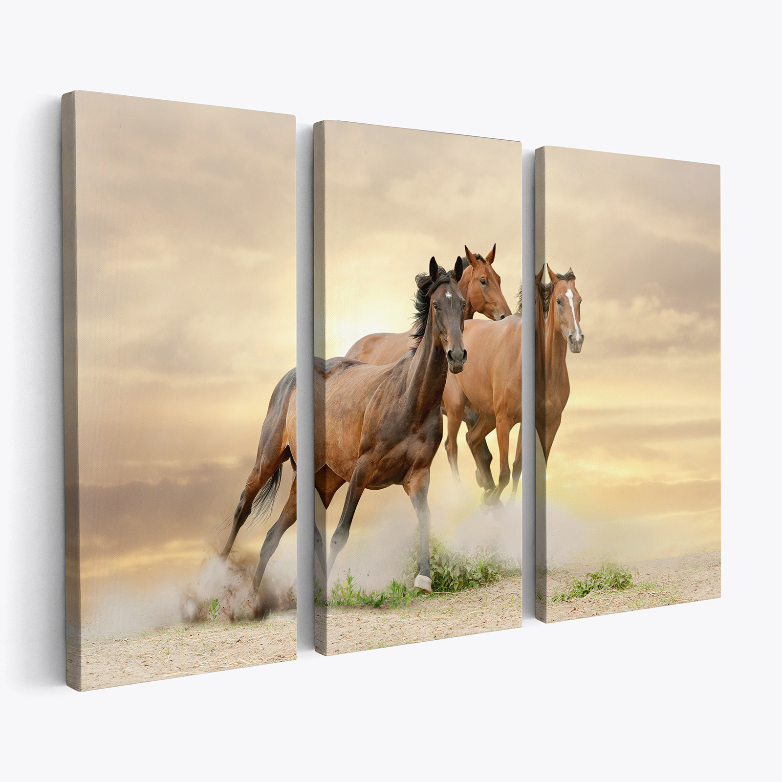 Trípticos de lienzos impresos en alta definición, montados en bastidores de pino de 2 cm de grosor con clavijas de retención.