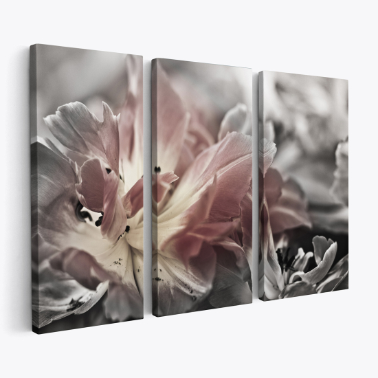 Trípticos de lienzos impresos en alta definición, montados en bastidores de pino de 2 cm de grosor con clavijas de retención.