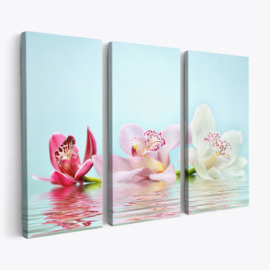 Trípticos de lienzos impresos en alta definición, montados en bastidores de pino de 2 cm de grosor con clavijas de retención.