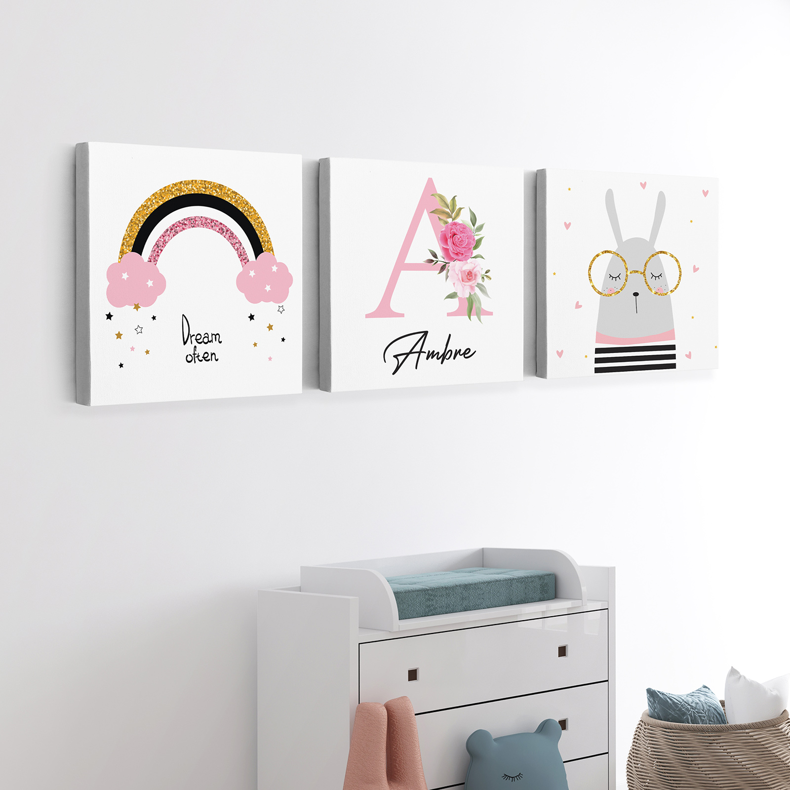 Cuadro trÃptico personalizado para niños - Infantil - ArcoÃris Lama