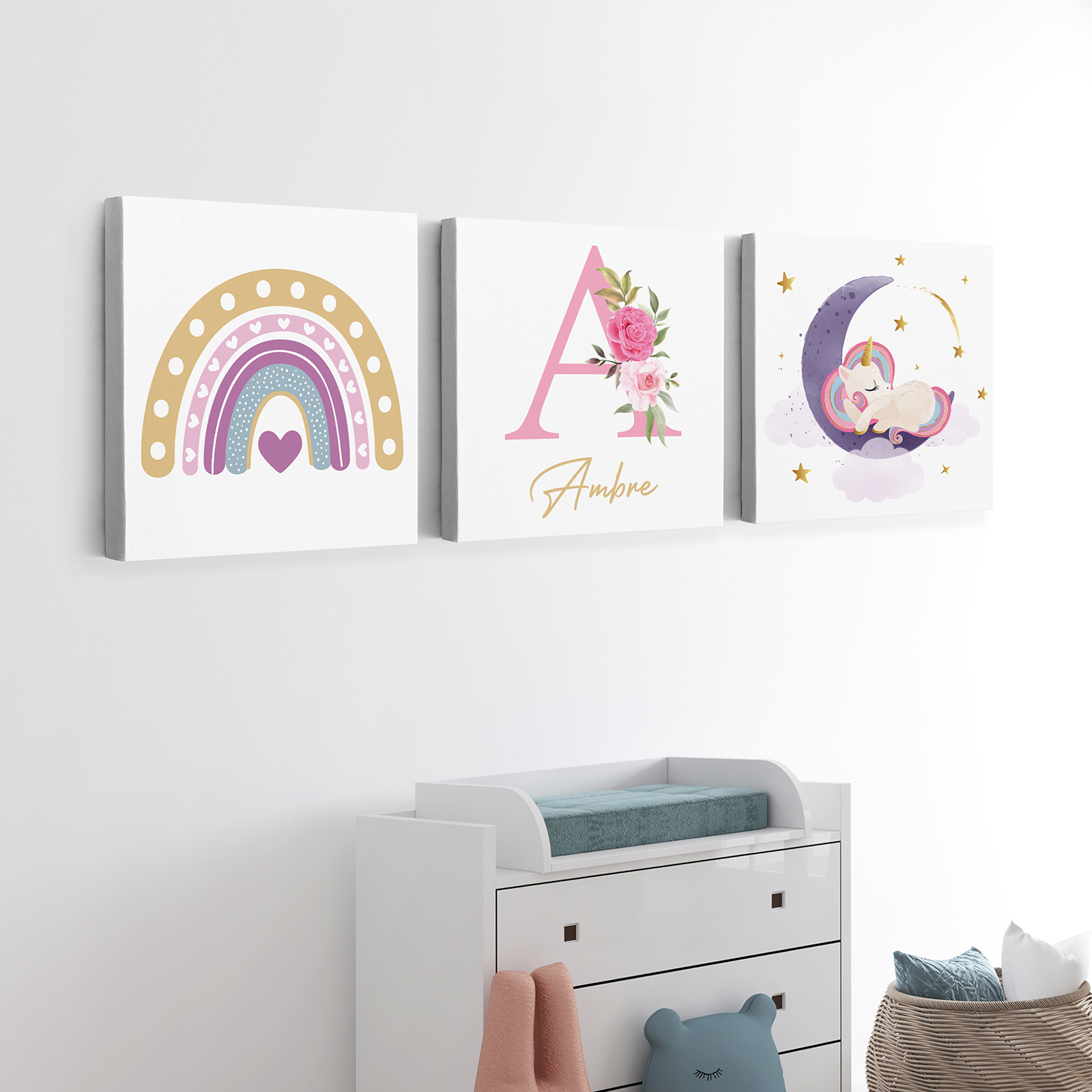 Cuadro trÃptico personalizado para niños - Infantil - ArcoÃris Unicornio
