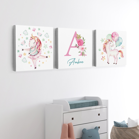 Cuadro tríptico personalizado para niños - Infantil - Unicornios