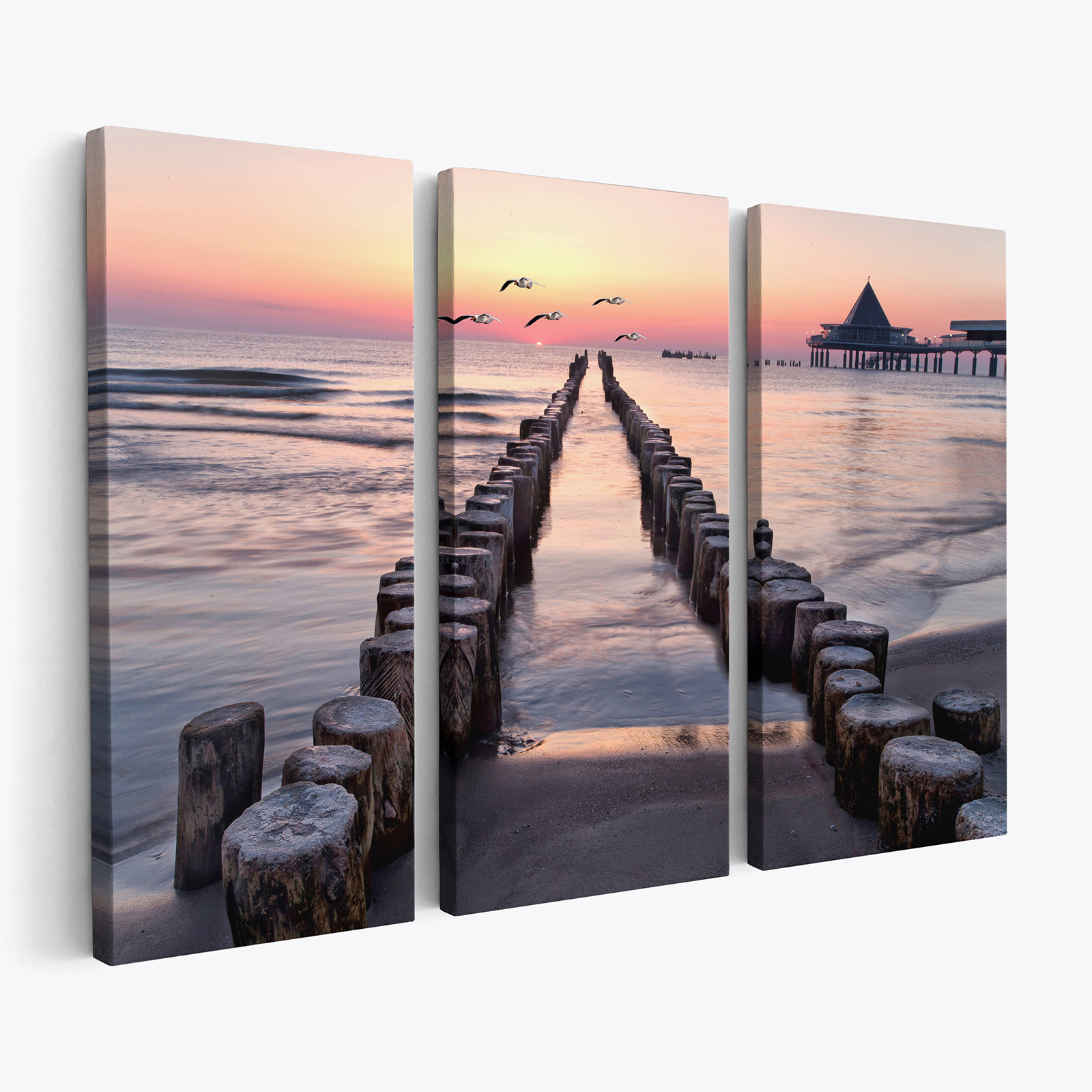 Trípticos de lienzos impresos en alta definición, montados en bastidores de pino de 2 cm de grosor con clavijas de retención.
