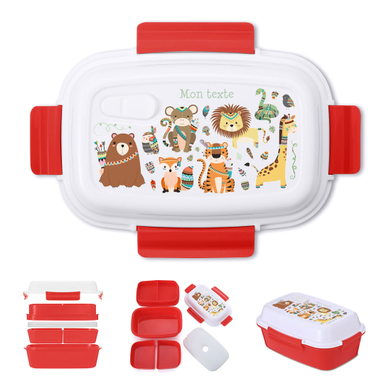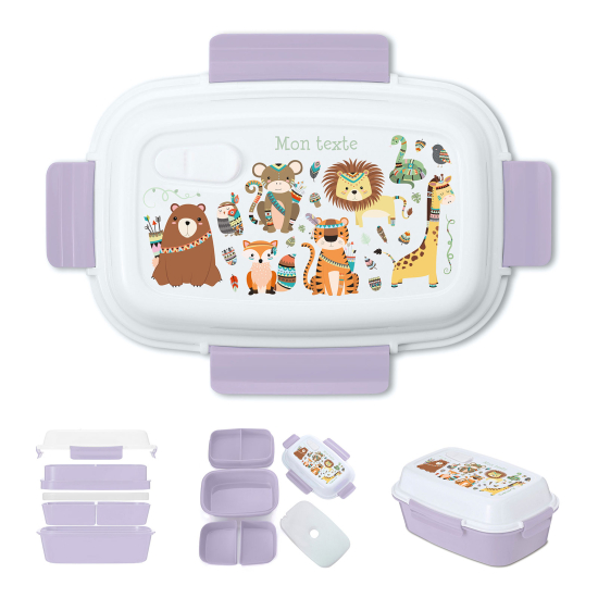 Con una capacidad de 1000 ml, estas cajas de almuerzo personalizadas están divididas en tres compartimentos modulables y vienen equipadas con un bloque de hielo removible para mantener los alimentos frescos. Su tapa hermética puede ser personalizada con un encantador diseño y el nombre de su hijo/a.
