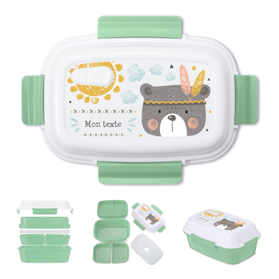 Con una capacidad de 1000 ml, estas cajas de almuerzo personalizadas están divididas en tres compartimentos modulables y vienen equipadas con un bloque de hielo removible para mantener los alimentos frescos. Su tapa hermética puede ser personalizada con un encantador diseño y el nombre de su hijo/a.