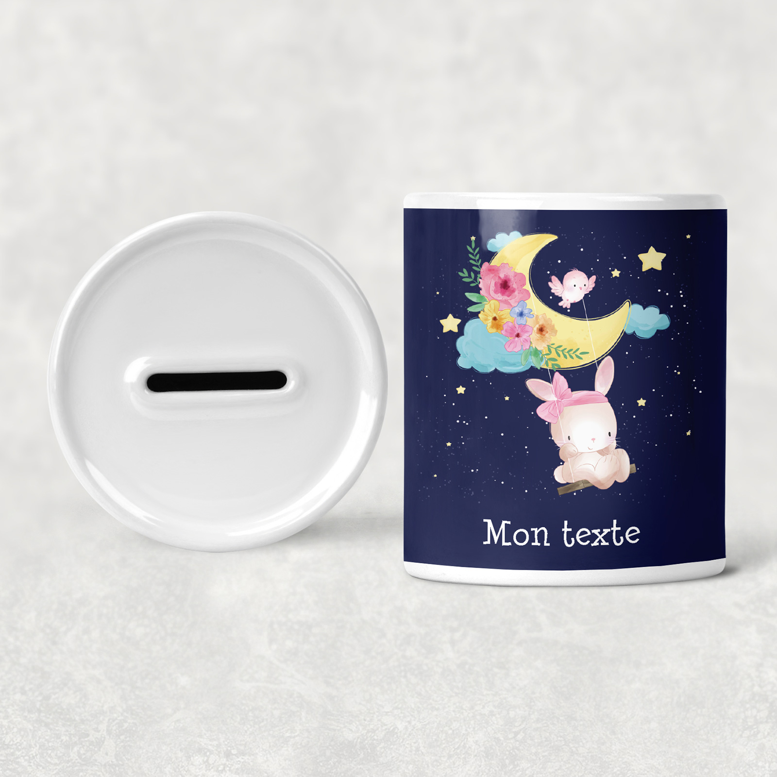 Hucha para niños personalizada - Infantil - Conejo Columpio