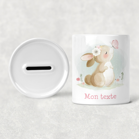 Hucha para niños personalizada - Infantil - Conejo Mariposa