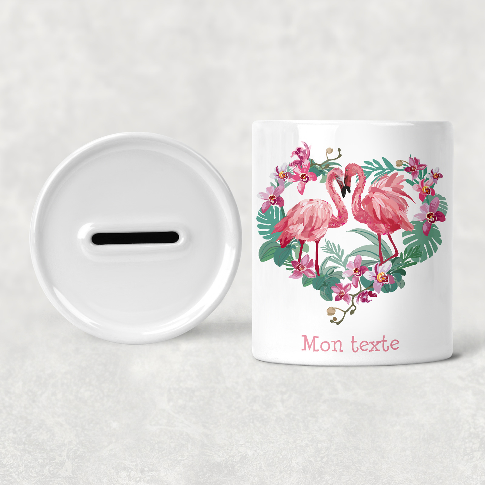 Hucha para niños personalizada - Infantil - Flamencos rosas Corazón