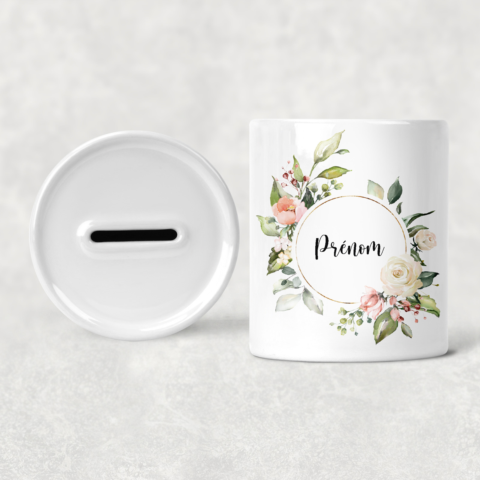 www.lumalea.es > Infantiles > Huchas > Nombre Personalizable > Hucha para niños personalizada - Infantil - Flores
